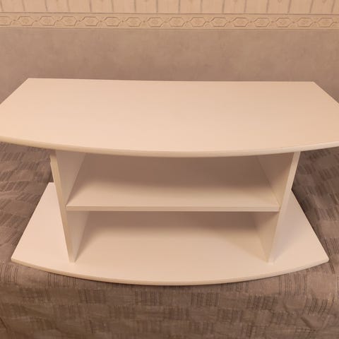 Myydään acazia tv-taso. Siisti, pöytälevyssä pieni ruuvin jälki tv:n kiinnityksestä.
