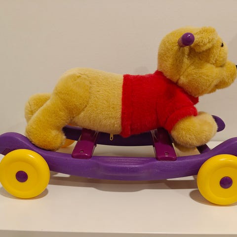 Myydään nalle puh auto,siisti ,ehjä ja toimiva soittaa musiikkia, töötit toimii, sopii 1-vuotiaasta alkaen. käytön jälkiä näkyy. Nasu hahmo puuttuu kuvassa näkyy. Nouto kulomäki ja vuosaari