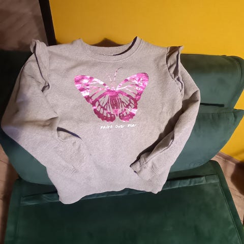 Myydään perhospaita. Ei ollut lapsen mieleen. Pohjaväri tummansininen.