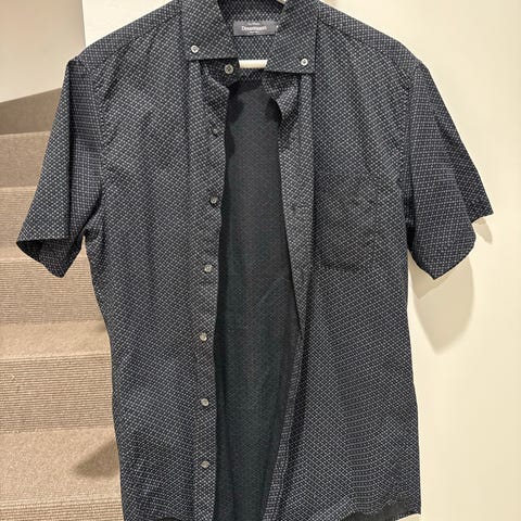 Dressmann Slim Fit miesten paita, koko L. Paita on kirjava ja siinä on pieni kuviointi. Valmistettu joustavasta materiaalista, joka tarjoaa mukavuutta ja istuvuutta. Sopii erilaisiin tilaisuuksiin ja arkipukeutumiseen.