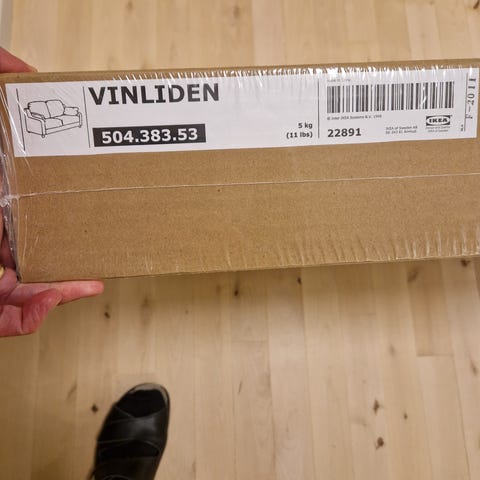 Uusi, 3-istuttavan Ektorp-sohvan päällinen, joka on vielä paketissa. 100% Polyesteri. Vesipesu.