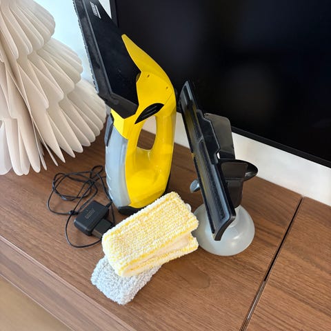 Kompakti akkukäyttöinen ikkunapesuri, jolla ikkunoiden sekä muiden kodin tasaisten pintojen peseminen sujuu nopeasti ja helposti - ja lopputulos on kirkas, siisti ja raidaton.