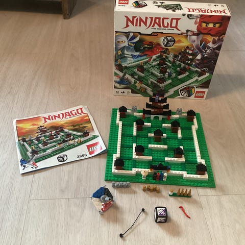 LEGO Ninjago 3856 lautapeli sisältää pelilaudan, pelinappulat sekä ohjeet. Pelissä on Ninjago-teema ja se soveltuu lapsille. Peli on pakattu alkuperäiseen laatikkoon, joka näkyy kuvissa.