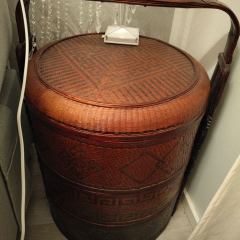 Myydään kuvan kaunis vintage kiinalainen käsinmaalattu mustapunalakkainen bambuhääkori.