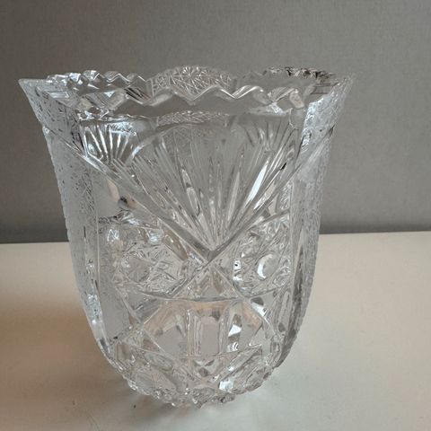 Lasimaljakko, jossa on kauniisti hiottu lehtikuvio.