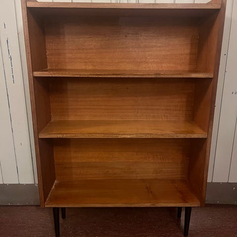 Hyllyssä on näkyviä kulumisen jälkiä ja pieniä naarmuja, jotka kertovat sen pitkästä historiasta. Metalliosissa on hieman patinaa, mutta yleisilme on siisti ja käyttökelpoinen.