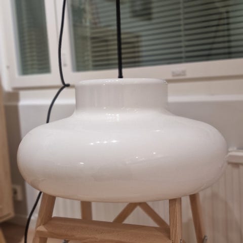 Tyylikäs Fagerhults Belysning akryylikupuinen kattovalaisin. Valmistaja on tunnettu laadukkaista valaisimistaan, ja tämä malli edustaa modernia muotoilua, joka sopii monenlaisiin sisustuksiin. Valaisimen valkoinen väri ja metallinen yksityiskohta luovat ajattoman ilmeen. Keskiössä messinkikoriste, asennetaan katon rajaan. Sisältää 5 valaisinpistettä.Moderni retrotyyli, joka yhdistää yksinkertaisen muotoilun ja käytännöllisyyden. Fagerhults Belysning on tunnettu skandinaavisesta muotoilustaan, joka korostaa valon ja tilan harmoniaa.Valaisimessa on pieniä käytön jälkiä. Sähköosat vaikuttavat ehjiltä, mutta tarkistus on suositeltavaa ennen käyttöä.