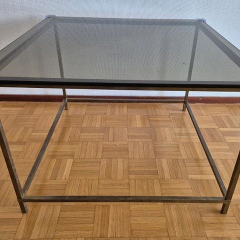 Vintage sohvapöytä 100cm lasitasolla