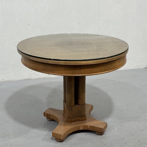 Hakusanat: moderni retro, design, käytetyt huonekalut, puu, pöytä, lasipöytä, sohvapöytä, lasi, sisustus, ruokapöytä, keittiö, olohuone, huonekalut, puujalat, design huonekalut, pyöreä pöytä, lasikansi