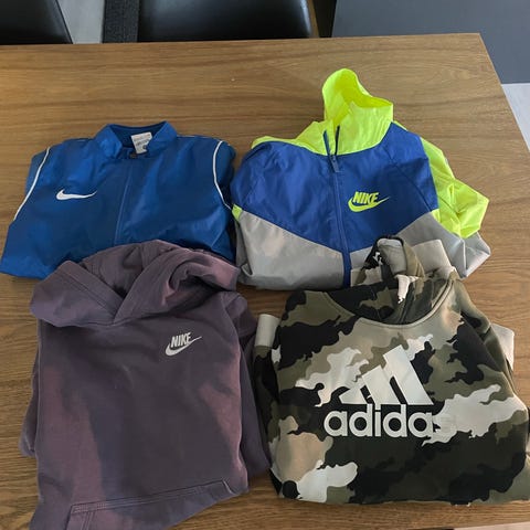 Kummassakaan vaattessa ei ole jälkiä/tahroja ja ovat siistejä. Vaattet ovat aitoja ja ollaan ostettu Niken omasta liikkeestä. Vaatteiden koko on 128-137 cm.