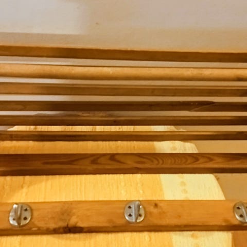 Hakusanat: metalli, seinähylly, hattuhylly, puu, eteinen, säilytys