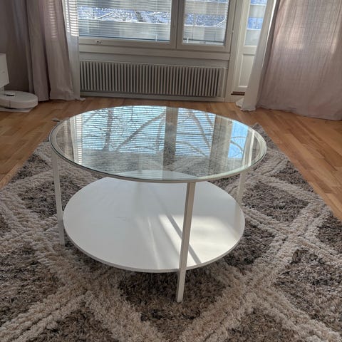 Lasinen sohvapöytä, hyvä kunto, nouto keskustasta:)