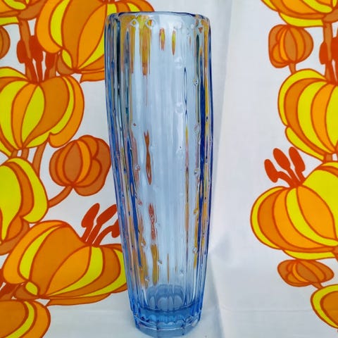 Hakusanat: maljakko, muotoilu, lasimaljakko, design huonekalut, lasitaide, koriste-esine, Paketoitava, Valmistaja, itäblokin modernismi, design, lasiesine, koriste, vintage huonekalut, keräily, sklo union, vintage, sininen, lasi, sisustus
