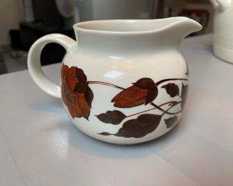 Arasbia Heini maitokannu/kaadin. Design Raija Uosikkinen. Pikkukruunuleima.