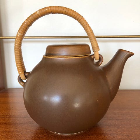 Arabia teekannu rottinkikahvalla. Design Ulla Procope.