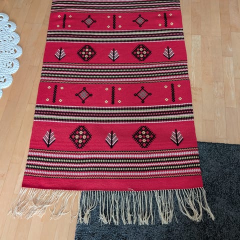 Hakusanat: matto, kuvio, pehmeä, tekstiili, Paketoitava, seinävaate, geometrinen, kodinsisustus, vintage huonekalut, koriste, vintage, retro, sisustus, punainen, käsityö, ryijy
