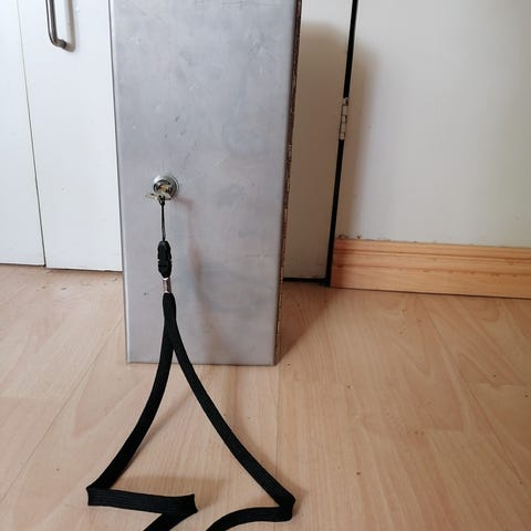 Kaapissa on havaittavissa kulumisen merkkejä, kuten pieniä naarmuja ja kulumia reunoissa. Yksi kulma on hieman vaurioitunut, mutta se ei vaikuta kaapin rakenteelliseen kestävyyteen.
