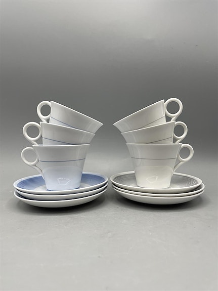 Chodziez kahvikupit 6kpl. Vihreä lehtikuviointi ja kultareunus. Valmistaja Chodziez, joka on tunnettu laadukkaasta posliinistaan vuodesta 1852 lähtien.