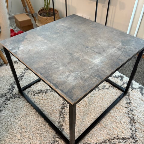 Säädettävät Ikea - jalat, joilla ei siis säädetä varsinaisesti korkeutta, mutta joilla säädetään pöytä vaateriin, jos alusta ei ole tasainen. Noin mitat 63 cm x 67 cm ja korkeus n. 54 - 56 cm. Rahojen päällä upotettu 6mm lasi, jonka saa irti, jos haluaa vaihtaa alle vaikka omia valokuvia tjms.