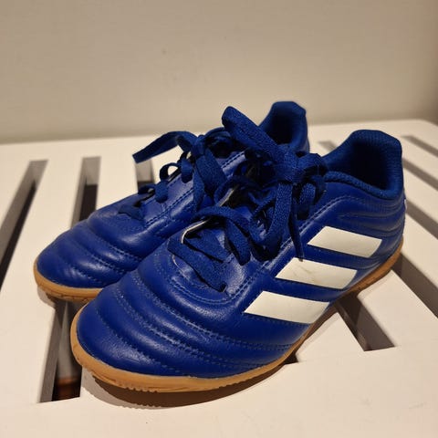 Koon 31 19cm lasten Adidas sisäpelikengät käytetyt mutta vielä ihan käyttäkuntoiset nahkakengät Katso siis kuvat. Kantapäässä ollu nimikirjaimet.
