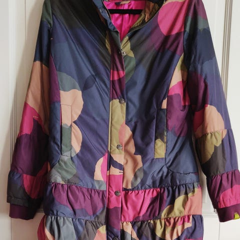 Myydään kerran käytetty toppatakki. Lapussa koko S, mutta menee myös M-kokoiselle. Oversize.