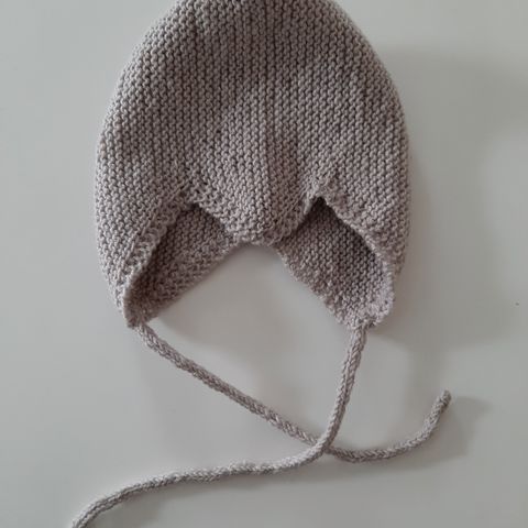 Vaaleanpunainen merinovillainen vauvan myssy. Lankana Drops Merino extra fine lanka (väri 46 aavikkoruusu).