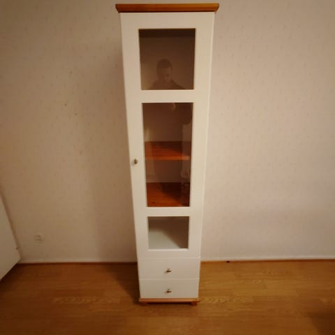 Hyväkuntoinen lasiovellinen vitriinikaappi