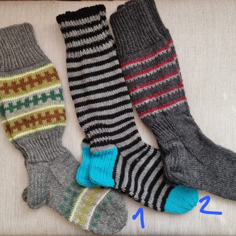 Puolison neulomia lapasia. Lankana 7-veljestä. Punamustat myyty