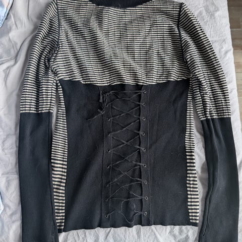 Kirjava neulepusero, pituus 64cm, hihat 67cm, hinta 7e