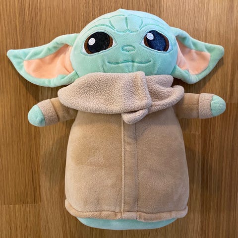 Suuri 66 cm korkea pehmolelu ikoninen Grogu‑hahmo sarjasta The Mandalorian. Yleellinen pehmeä materiaali, virallinen lisenssi.