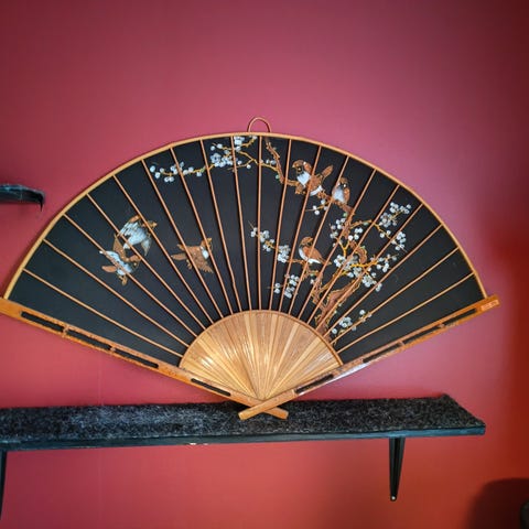 Iso koriste viuhka seinään. Leveys 150cm ja korkeus 88cm.