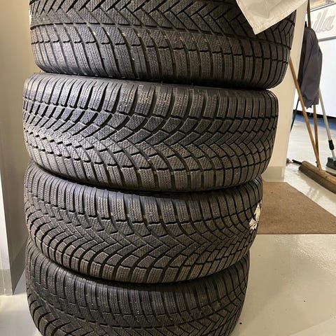 Nyt tarjolla lähes uudet renkaat ja vanteet Enyaqin alta puoleen hintaan, 700 eurolla koko sarja. Kulutuspintaa kaikissa renkaissa 7,8 - 8,3 mm.