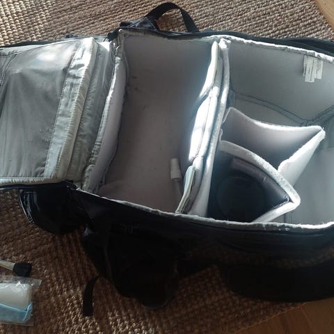 Todella mahtavasti tilaa kameratarvikkeille. Täysin uuden veroinen, lähes käyttämätön.