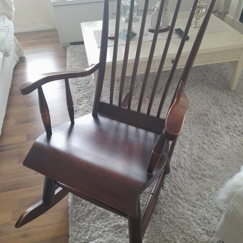 Kaunis musta kiikkutuoli /keinutuoli kotiin tuomaan arvokasta tunnelmaa. Sopii hyvin lukemiseen tai tv:n katseluun tai ihan vain rentoutumiseen. Muutamia naarmuja siellä täällä, muuten hyvässä kunnossa.