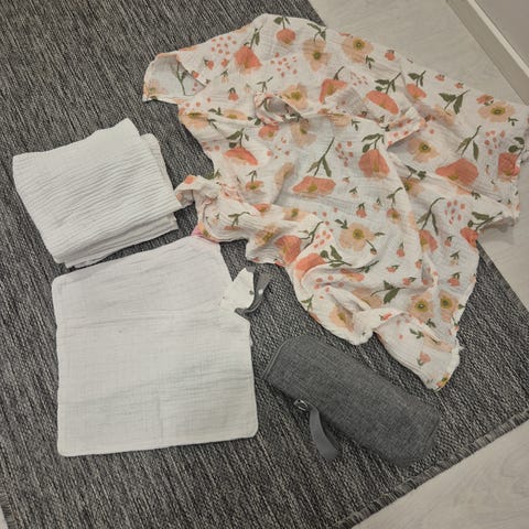 tämä setti sopii hyvin sekä vastasyntyneille että vauvoille ja suojaa vauvan vaatteet kastumiselta tai soseelta