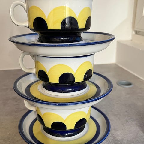 Arabia Paju mokkakupit alustasseineen 6kpl. Ei halkeamia tai lohkeamia.