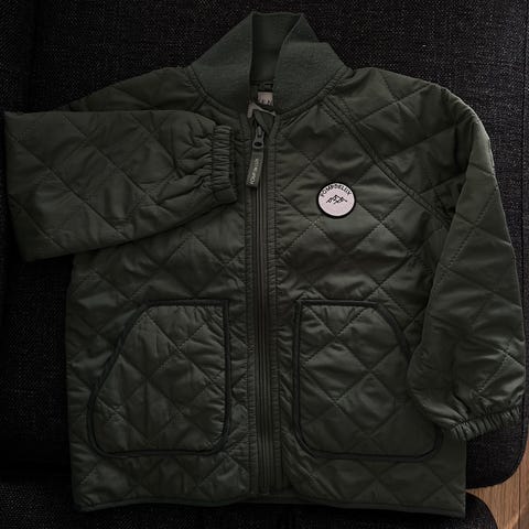 R-collection bombertyylinen pidempi kevyttoppatakki, sisäpuolella tikkivuori. Sopiva syksyyn ja alkukevääseen. Moitteeton kunto. Väri kaunis metsävihreä, kuvat muuttavat värin harmahtavaksi (viimeinen kuva lähimpänä todellista väriä). Edessä nepparikiinnitys ja vetoketjutaskut + hihassa vetoketjutasku.