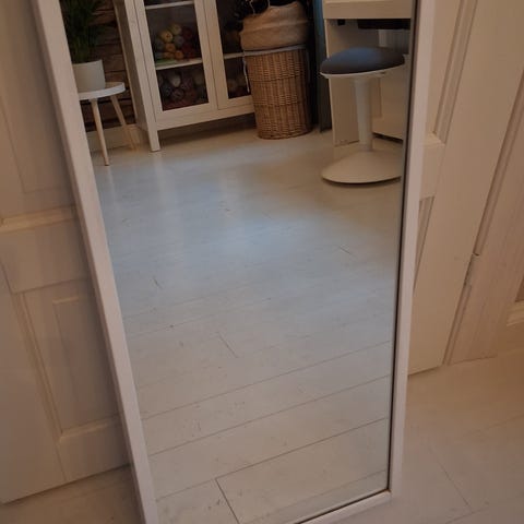 Kuvanmukainen fasettihiottu peili. Koko noin 90x60cm. Taustassa ripustuskoukut.