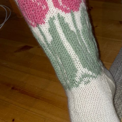 Käsintehdyt villasukat, joissa on raidallinen kuviointi. Värit ovat tummanharmaa, ruskea ja vaalean harmaa. Sukat on suunniteltu istuviksi ja sopivat koko 36/37 jalkaan. Materiaalina on Isoveli lanka!