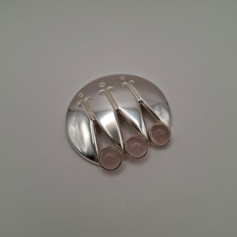 Ruotsalainen hopearintaneula. Hopealeima. Pituus noin 5 cm, paino 11 g. Kunnoltaan hyvä. Kaikki kristallit paikoillaan.