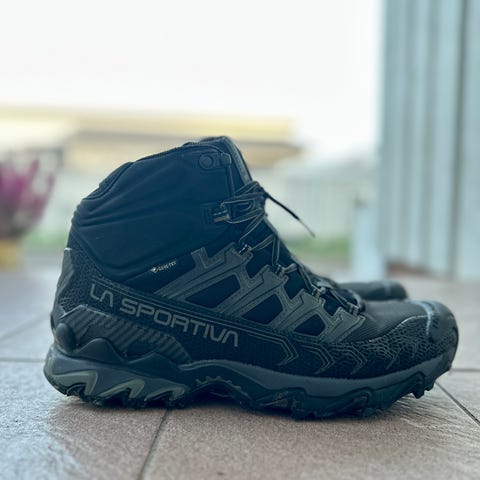 La Sportiva vaelluskenkä, koko 44, musta väri, valmistettu nahasta. Kenkä on varustettu Gore-Tex kalvolla, joka tekee siitä vedenpitävän ja hengittävän. Pohjassa on Vibram-ulkopohja, joka tarjoaa hyvän pidon erilaisilla alustoilla. Soveltuu vaellukseen ja ulkoiluun.