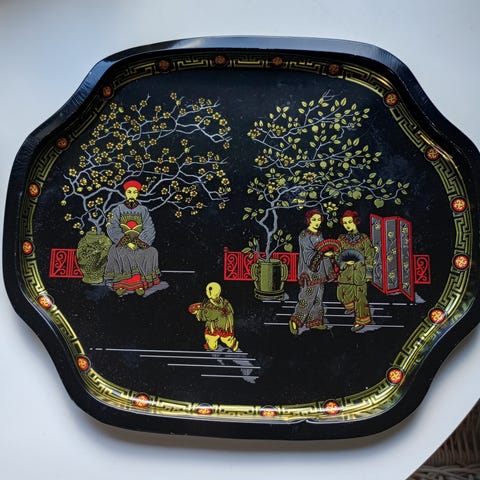 Myydään kuvan vanha retro tarjotin. Kulumaa on.