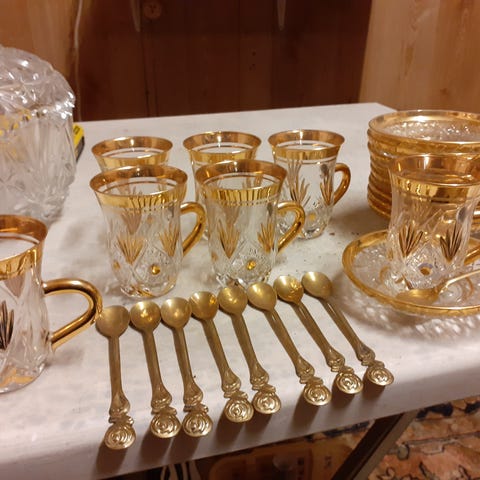 &Tradition Kristallilasi ja lautaset kultakoristeilla