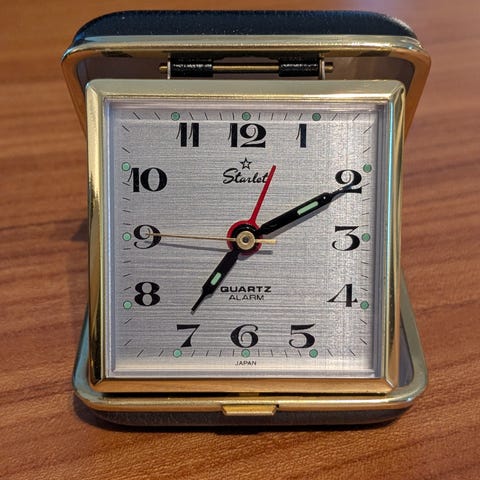 Myydään kuvien mukaisessa kunnossa oleva Schatz Touring matkakello alkuperäinen pakkaus Vintage korjattavaksi! 2 jewels