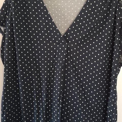 Yöpaita puuvillatrikoota, koko L. Toisessa sivusaumassa 8 cm halkio. Hihoissa pientä värjäytymää. Nouto / kulkeutuu omien menojen mukaan.