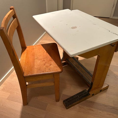Yhden istuttava vanha koulupulpetti, mukaan tulee myös tuoli (ei kuvasa).
