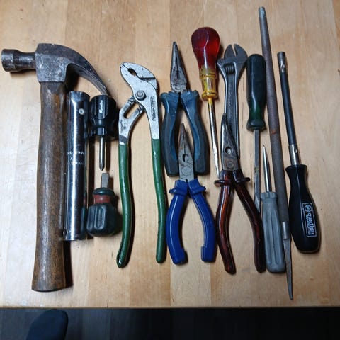 7 moduulia työkaluja. Muutama yksittäinen kadonnut, kuvista näkee.