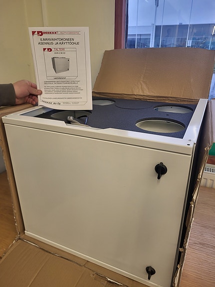 uokkansa matalin, energiatehokkain ja hiljaisin ilmanvaihtolaite alle 200 m2 asuntoihin. Moduulimittainen kone (597 x 599 x 446 mm, Ø160 mm) on helppo asentaa pesutornin yläpuolelle ja tilaa jää vielä reilusti vaikkapa viikkaustelineelle. Vakiovarustukseen sisältyvä etuvastus ja älykkäät kompensointitoiminnot takaavat, että ilmanvaihto toimii jatkuvasti myös talvipakkasilla. Vakiona markkinoiden älykkäin tarpeen mukaan ohjautuva kosteusautomatiikka.