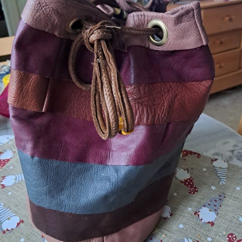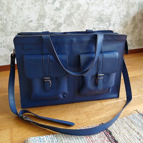 Myydään hyväkuntoinen kotimainen aidosta nahasta valmistettu nahkalaukku