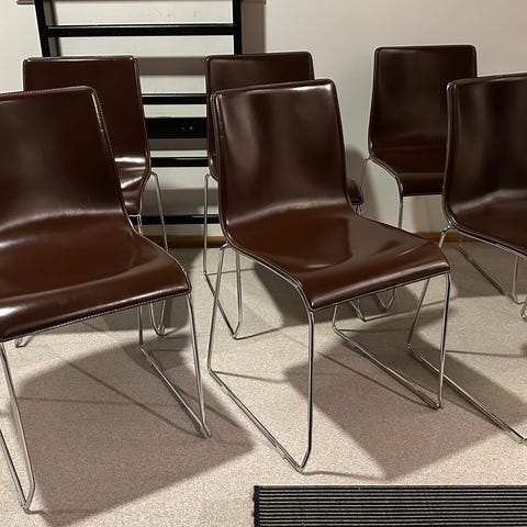 Myydään muuton alta pois jämäkät metallijallaiset nahkatuolit. Tuolit ostettu 1.5v sitten, käsitelty kahdesti hoitoaineella.